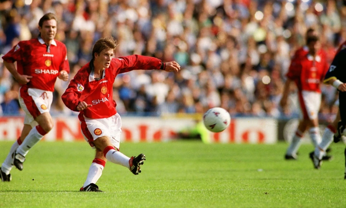 1996-1997. Theo BBC, đây là pha lập công nổi tiếng nhất trong sự nghiệp, cũng là bàn đưa tên tuổi Beckham đến với công chúng. Ảnh: Reuters